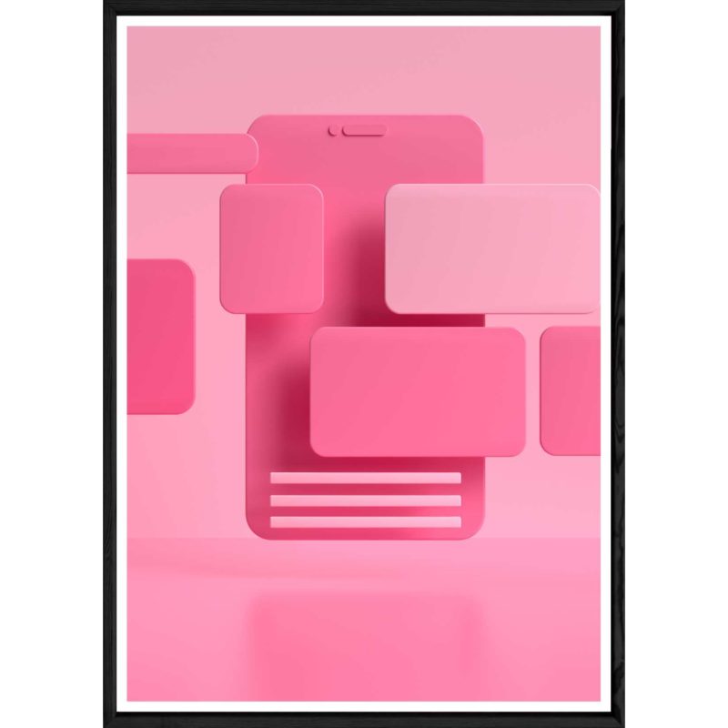 Tableau abstrait rose avec cadre noir POP – Taille 32×42