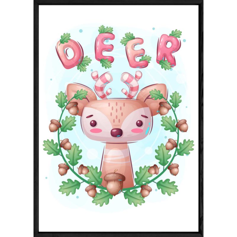 Tableau : animal cerf Cadre : Noir Format : 32×42 Collection : KID