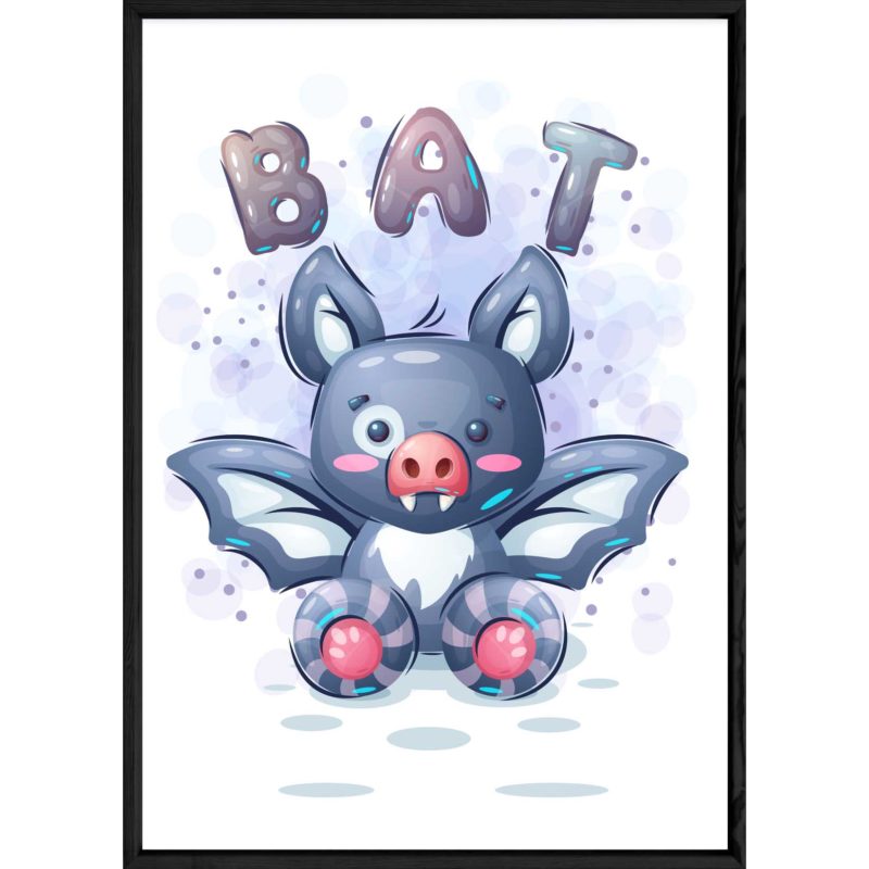 Tableau : animal chauve souris Cadre : Noir Format : 23×32 Collection : KID