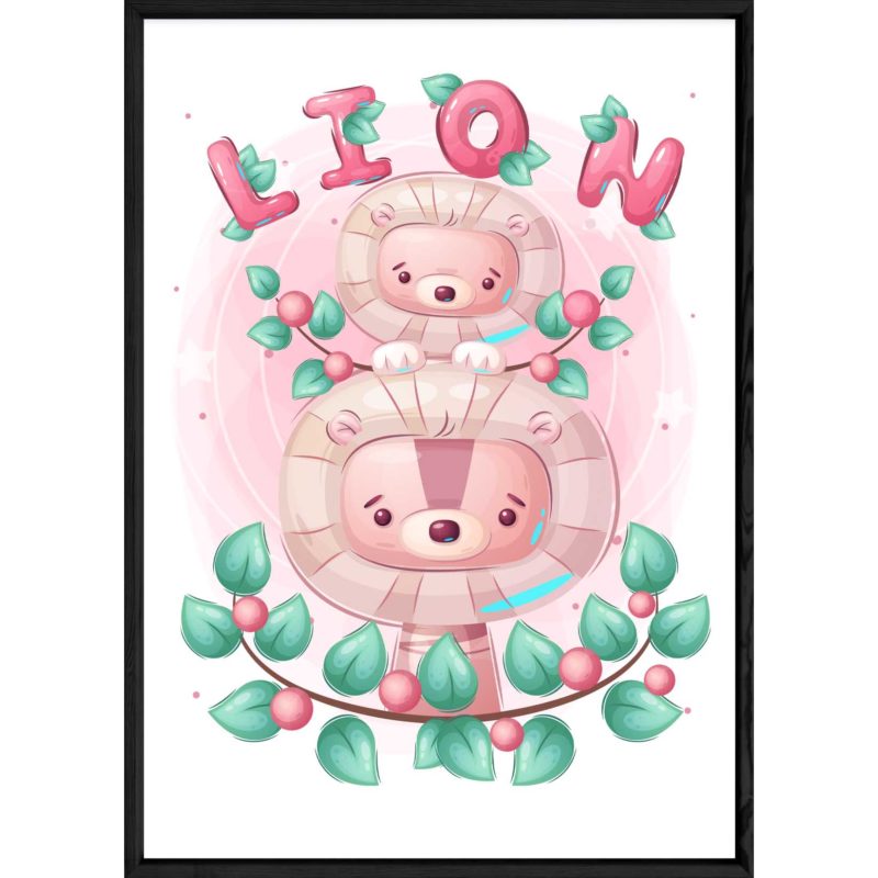 Tableau : animal lion Cadre : Noir Format : 32×42 Collection : KID
