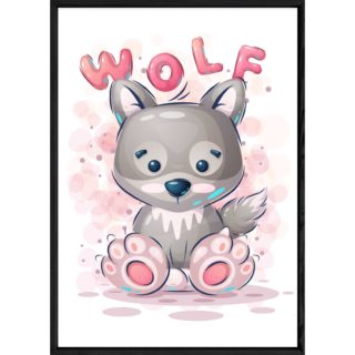 Tableau : animal loup Cadre : Noir Format : 23×32 Collection : KID