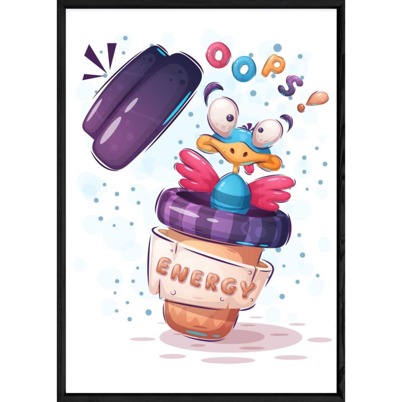 Tableau : animal oiseau Cadre : Noir Format : 23×32 Collection : KID