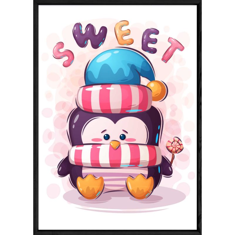 Tableau : animal penguin Cadre : Noir Format : 23×32 Collection : KID
