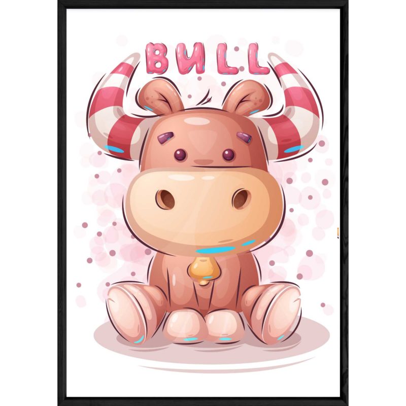 Tableau : animal taureau Cadre : Noir Format : 23×32 Collection : KID