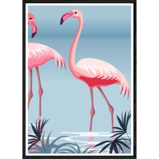 Tableau : Flamant rose Cadre : NOIR Taille : 32×42 Collection : POP