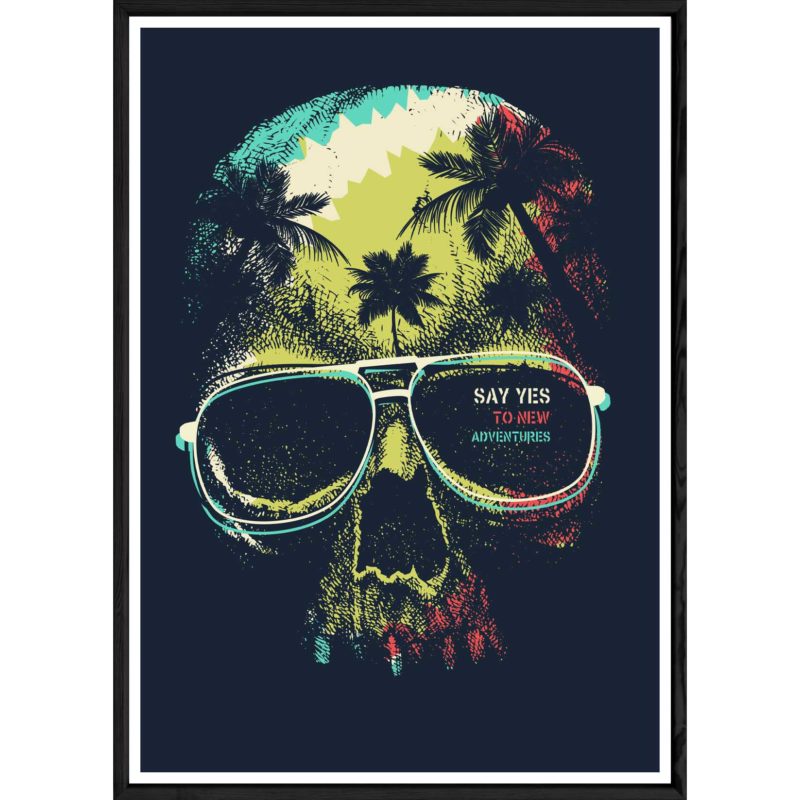 Tableau skull avec cadre noir POP – Taille 32×42