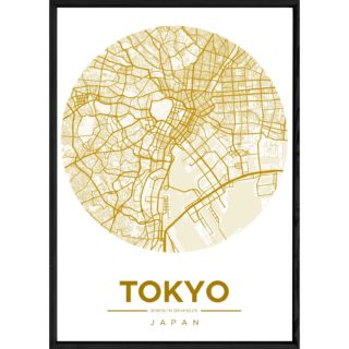 Tableau : TOKYO Cadre : NOIR Taille : 23×32 Collection : ROUND Couleur : JAUNE